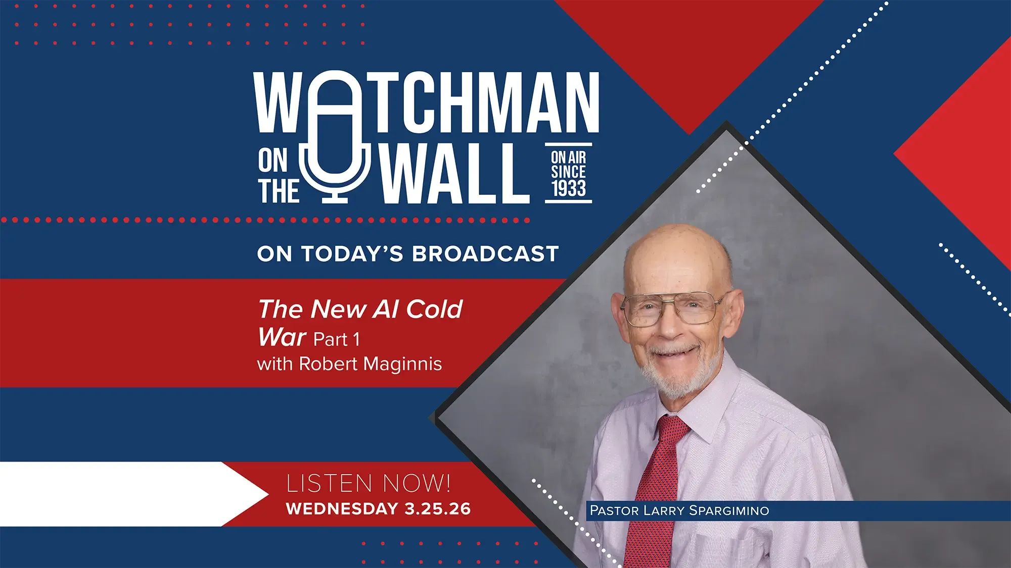 Join Larry Spargimino at Southwest Radio Ministries’ ‘Watchman on the Wall’ for an in-depth discussion with Lt. Col. Bob McGinnis on the emerging AI Cold War. Explore the spiritual, ethical, and geopolitical implications of artificial intelligence and how they intersect with biblical prophecy. Discover how AI is reshaping society and what it means for freedom, truth, and human dignity. Don’t miss this compelling analysis and prophetic insight.